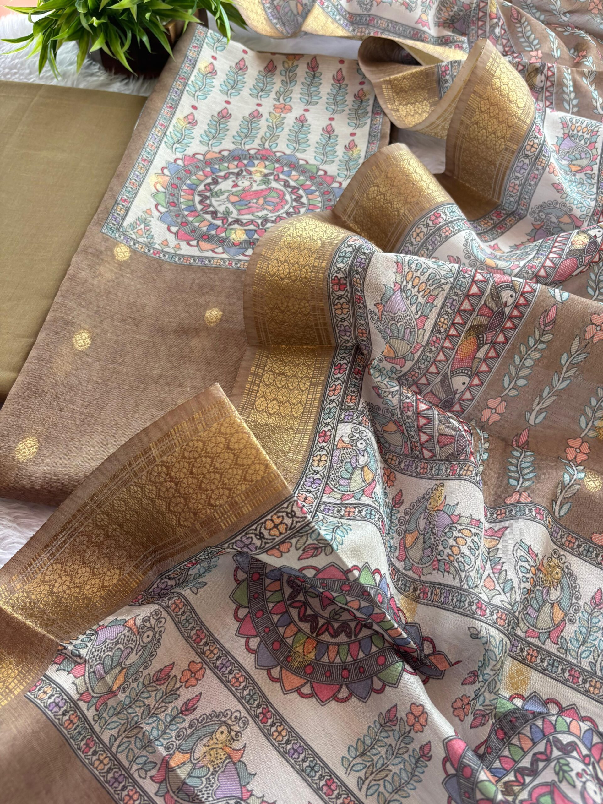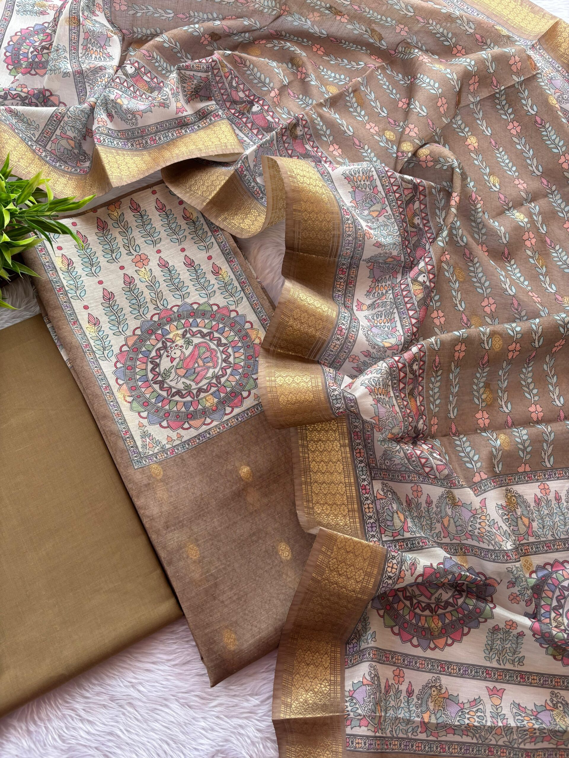 Madhubani design on yoke and Daman of Kota Banarasi woven shirt✨💫 paired with Cotton bottom ✨💫 and Kota Banarasi silk dupatta