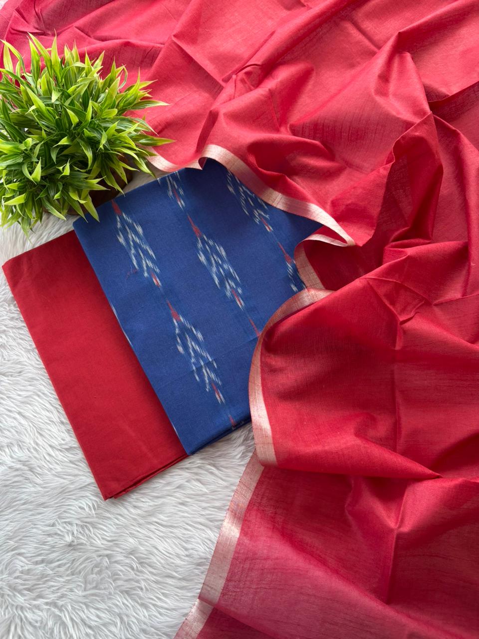 Ikkat cotton shirt 💙 paired with Semi Silk bottom ❤️and dual shade dupatta