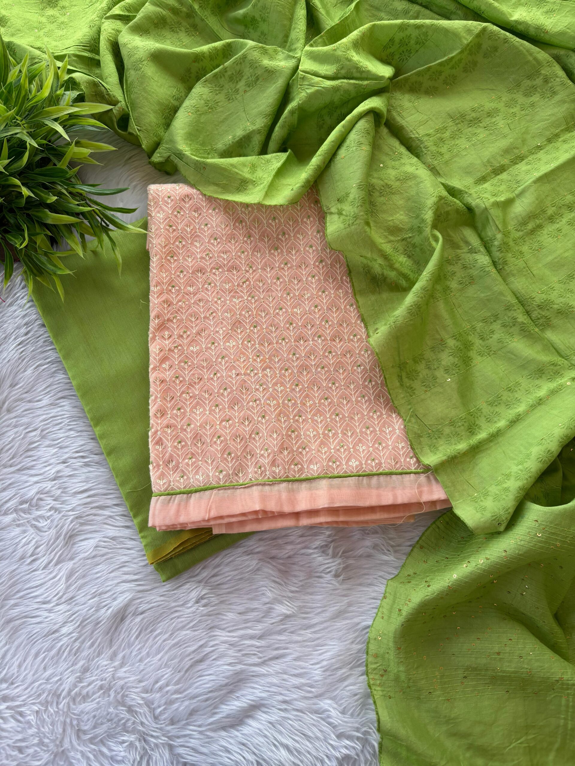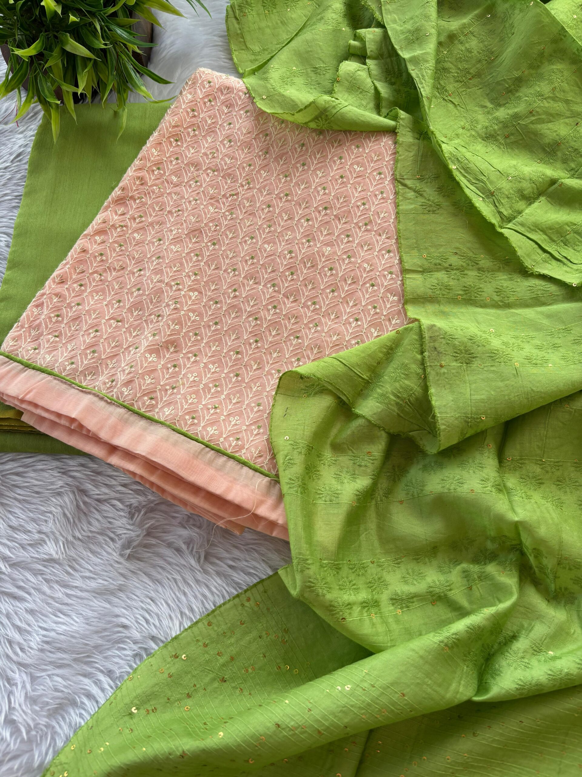 Chanderi Silk cotton has sequence and thread work all over shirt 🍃🌺 paired with Silk cotton bottom 🌺🍃and Sequence work silk cotton dupatta 🌺