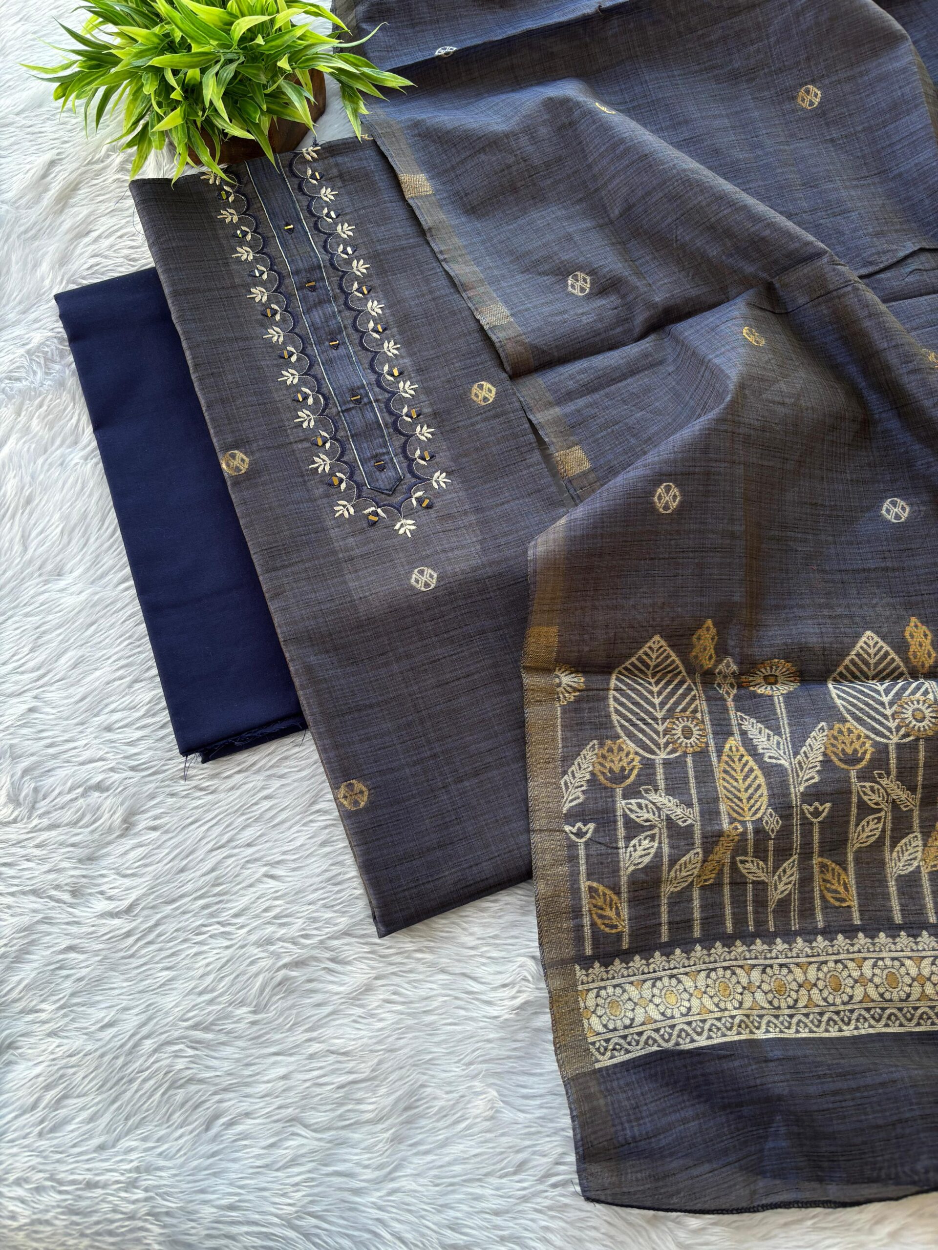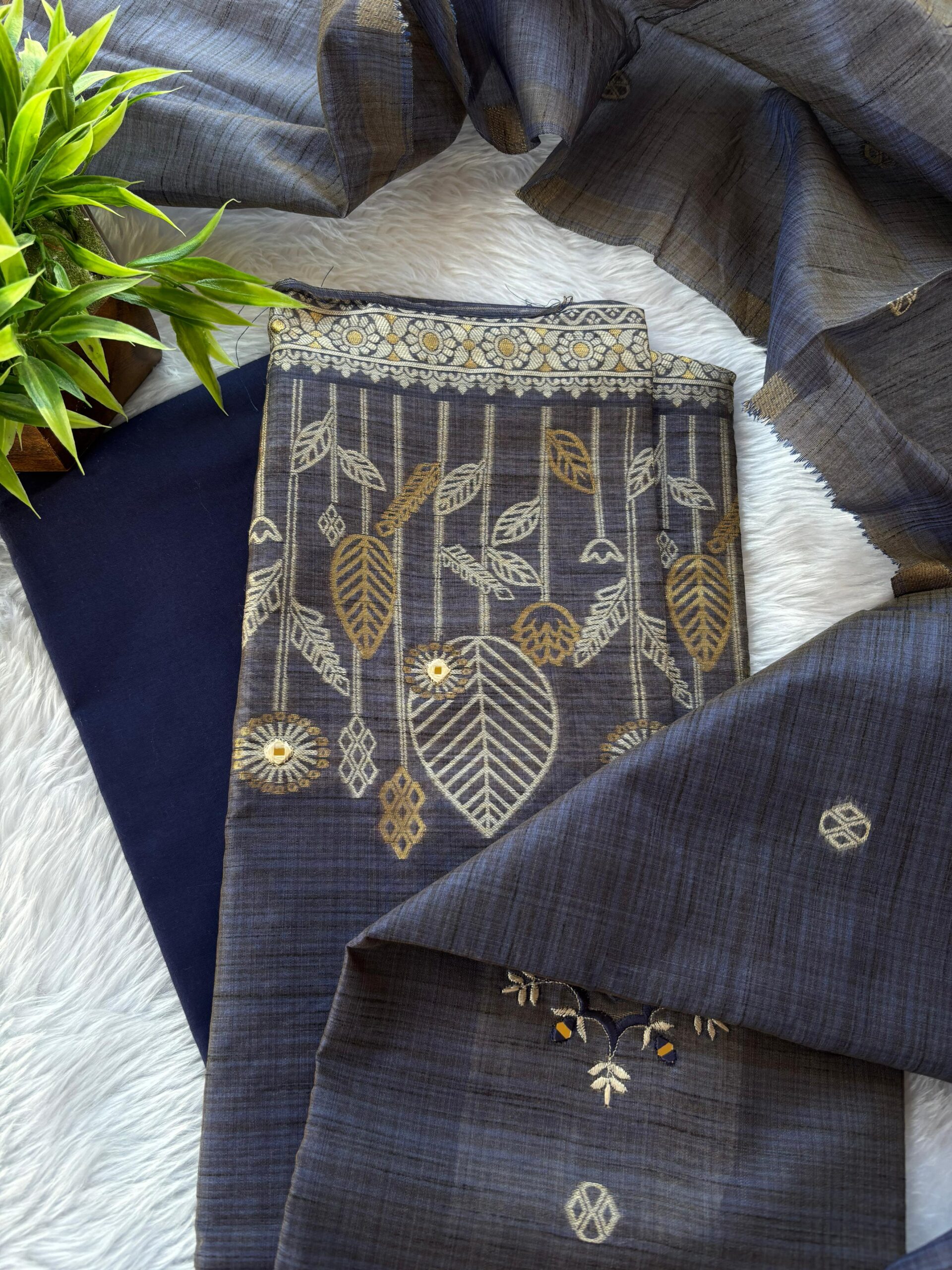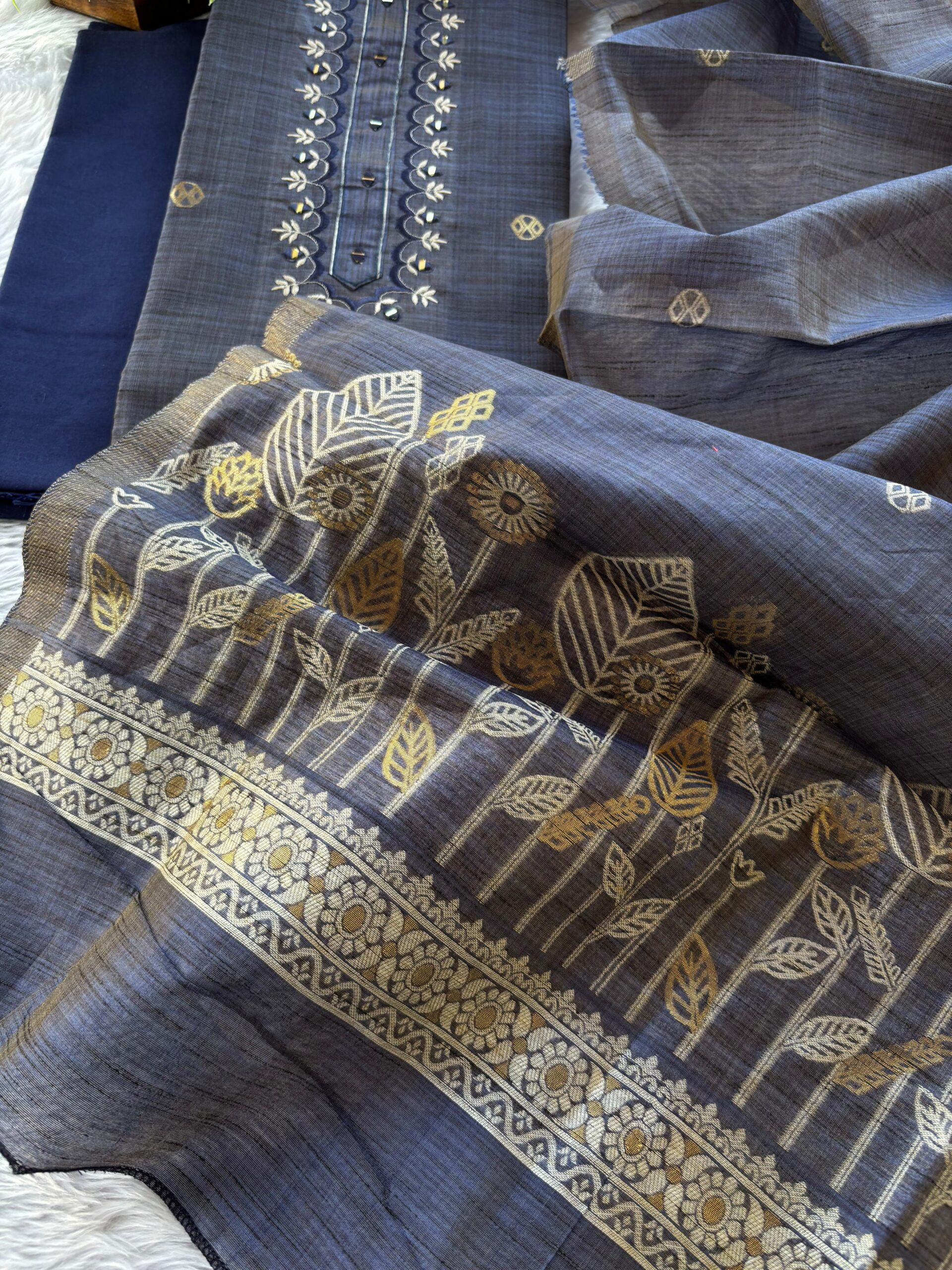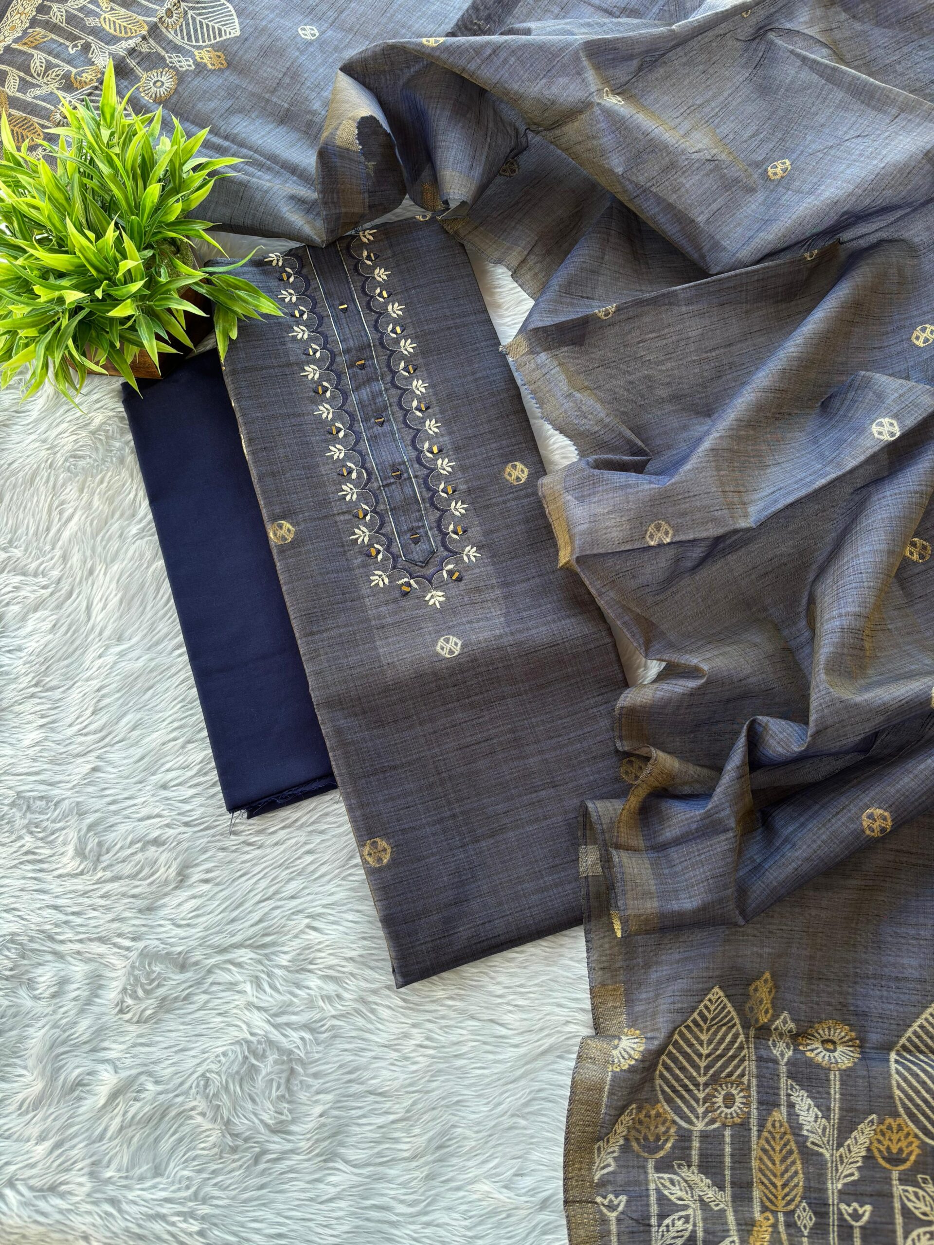 Royal Jamdani Jute Silks With mirror work top*🪷🍃 paired with *Cotton bottom 🍃🪷 and Jamdani jute silk dupatta
