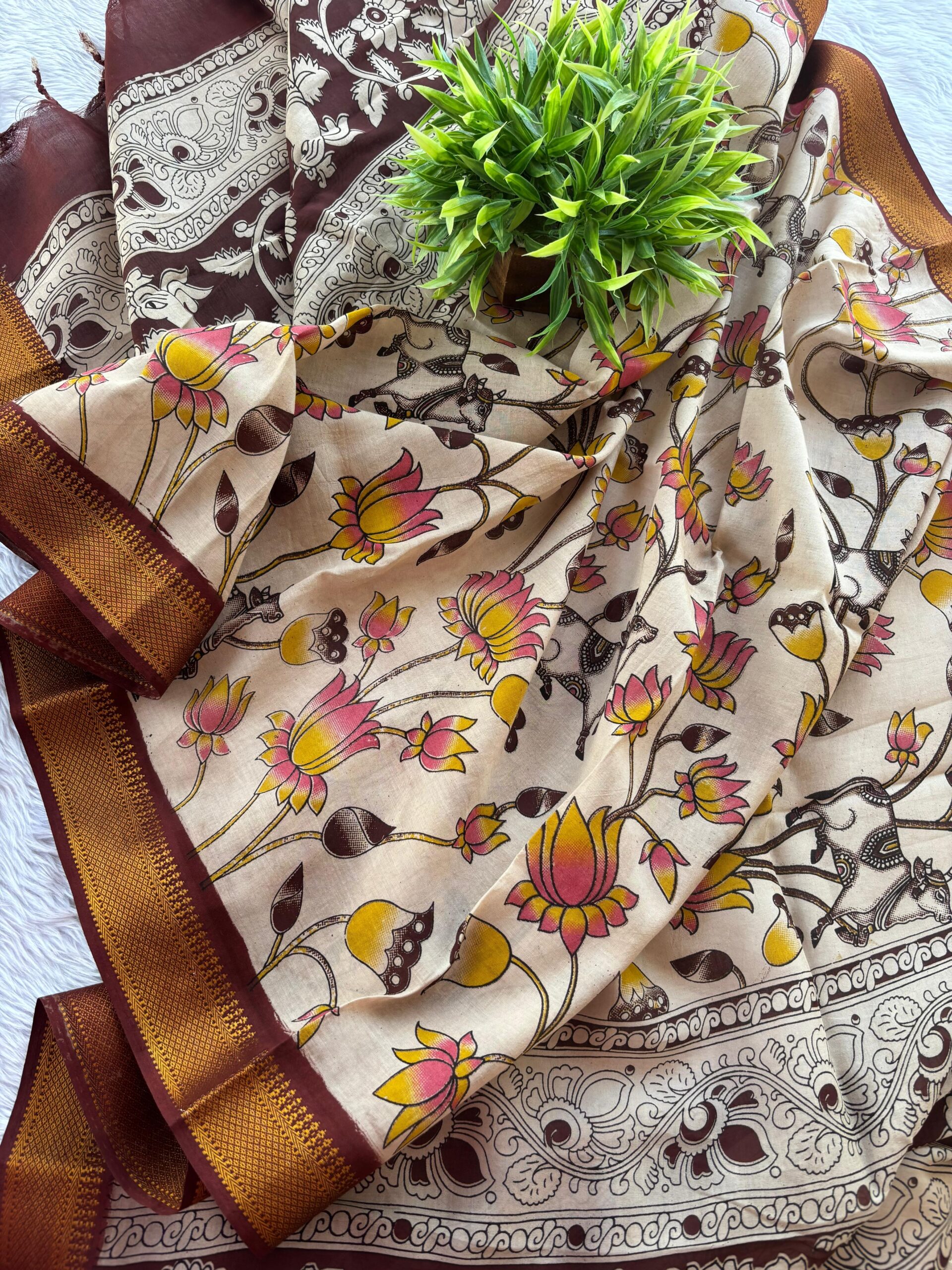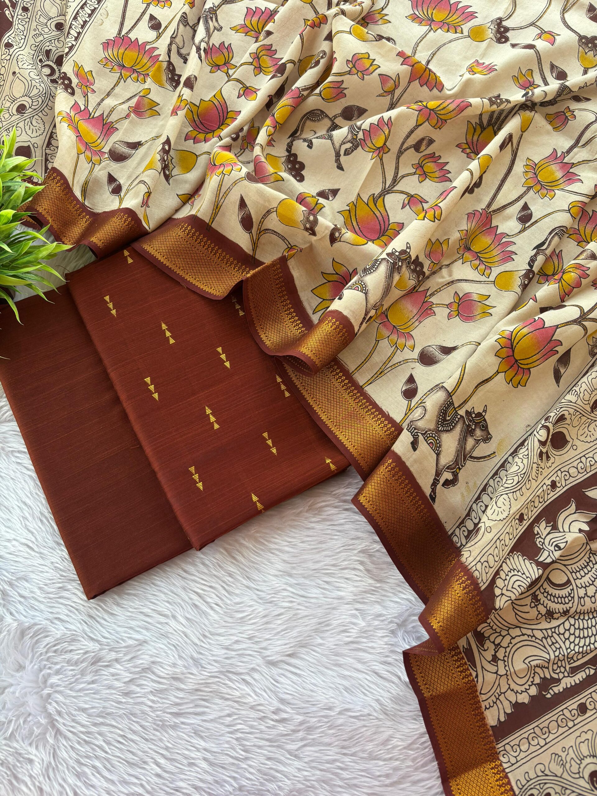 Pen kalamkari Silk Dupatta 🌸🌺 teamed with Raw Silk /Slub Silk Woven top and Plain raw silk bottom🌺🌸