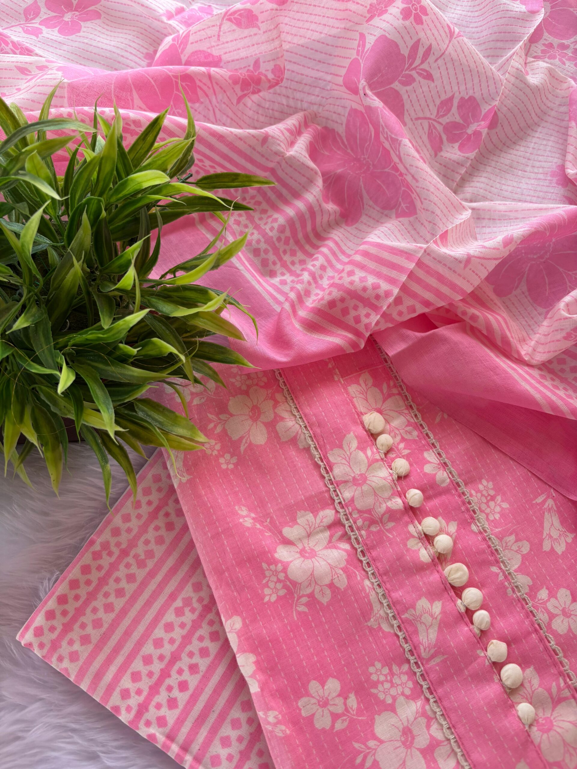 Soft cotton floral design top🌸 paired with 🌸Soft cotton bottom and dupatta