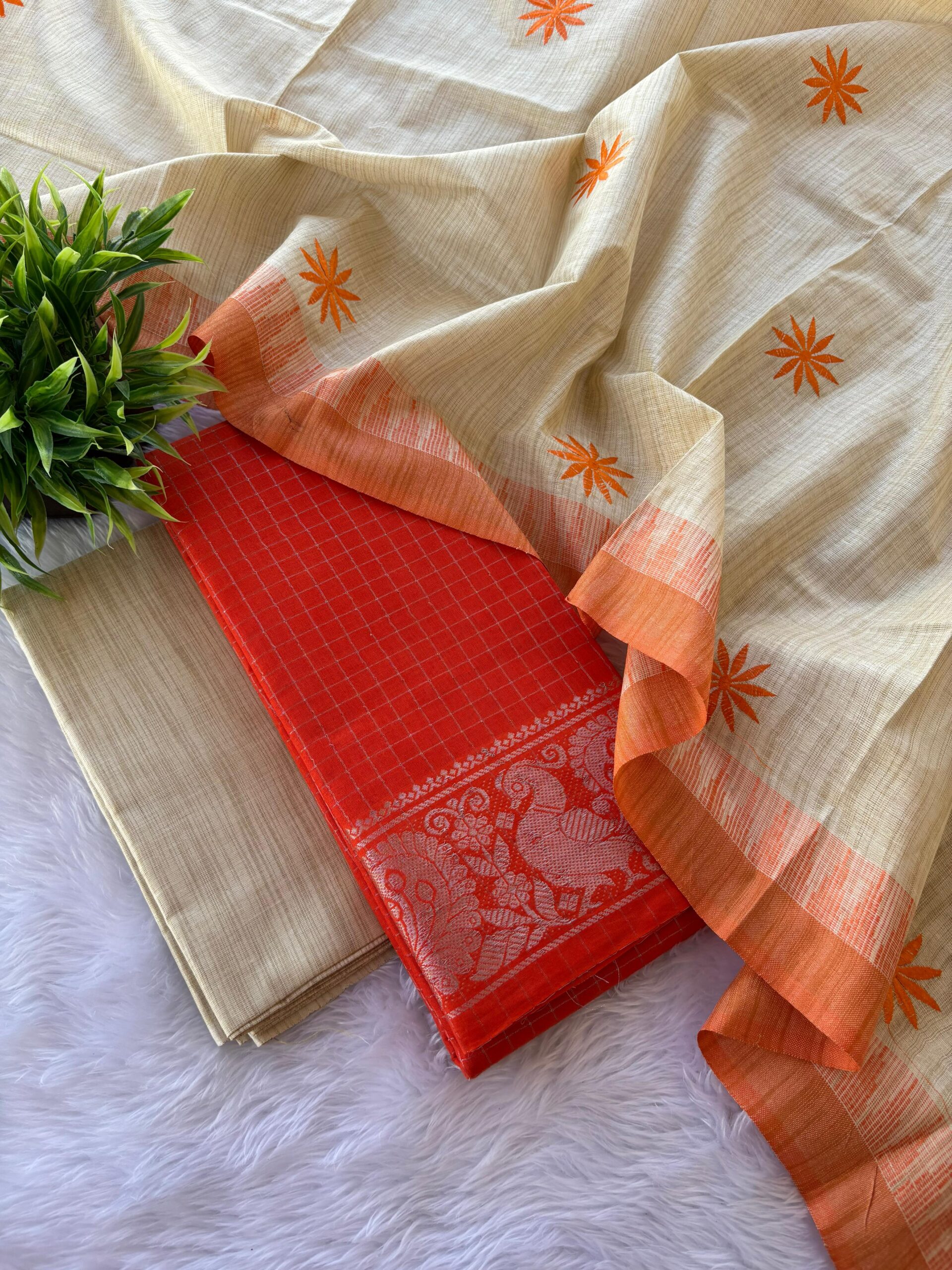 Purely Handloom Sungudi Zari Kattam Cotton Shirt 🌺 paired with Handloom Embroidered Khadi Silk Cotton dupatta 🌺 and Handloom Silk Cotton bottom